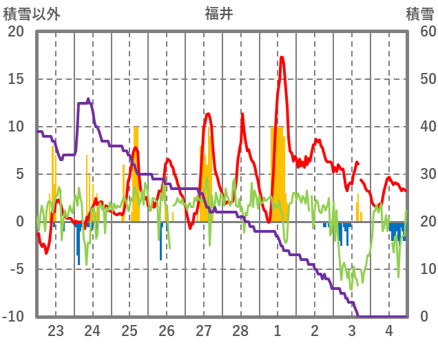 | 日 | 時 | 気温 | 降水 | 風向/風速 | 日照 | 積雪 | 降雪 |