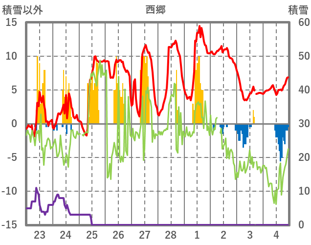 | 日 | 時 | 気温 | 降水 | 風向/風速 | 日照 | 積雪 | 降雪 |