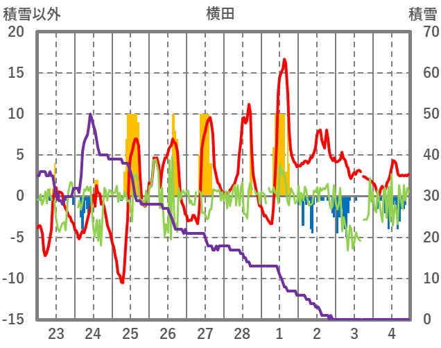 | 日 | 時 | 気温 | 降水 | 風向/風速 | 日照 | 積雪 | 降雪 |