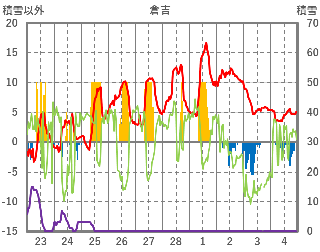 | 日 | 時 | 気温 | 降水 | 風向/風速 | 日照 | 積雪 | 降雪 |