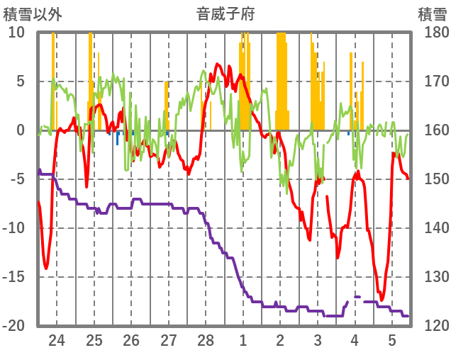| 日 | 時 | 気温 | 降水 | 風向/風速 | 日照 | 積雪 | 降雪 |