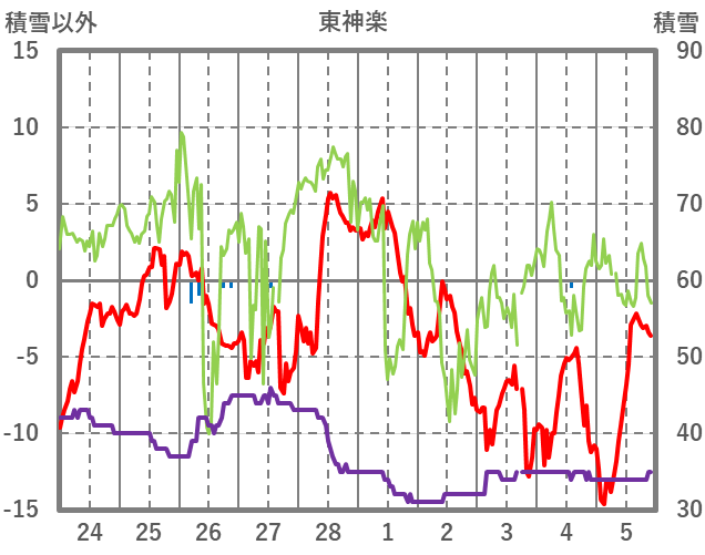 | 日 | 時 | 気温 | 降水 | 風向/風速 | 日照 | 積雪 | 降雪 |