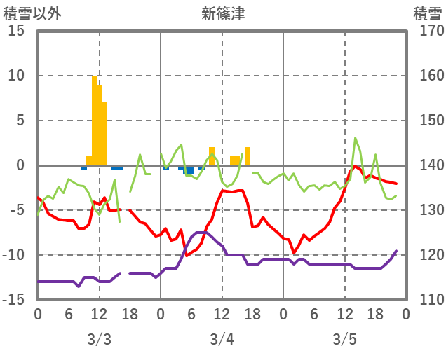| 日 | 時 | 気温 | 降水 | 風向/風速 | 日照 | 積雪 | 降雪 |