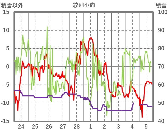 | 日 | 時 | 気温 | 降水 | 風向/風速 | 日照 | 積雪 | 降雪 |