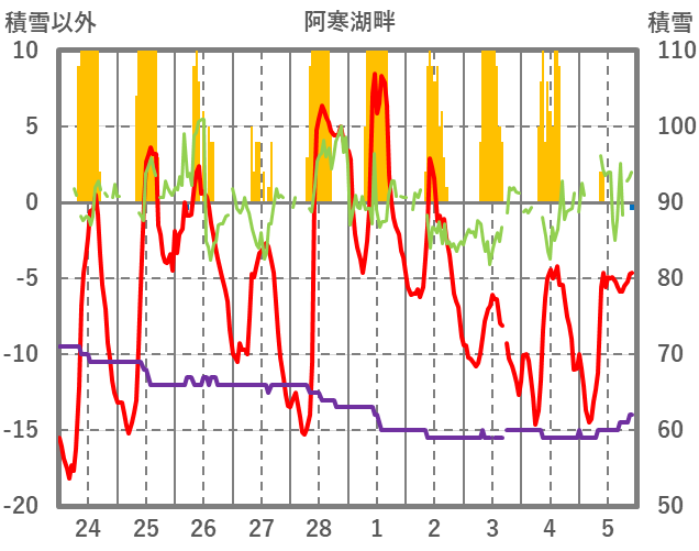 | 日 | 時 | 気温 | 降水 | 風向/風速 | 日照 | 積雪 | 降雪 |
