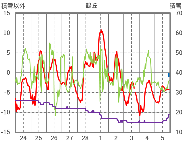 | 日 | 時 | 気温 | 降水 | 風向/風速 | 日照 | 積雪 | 降雪 |