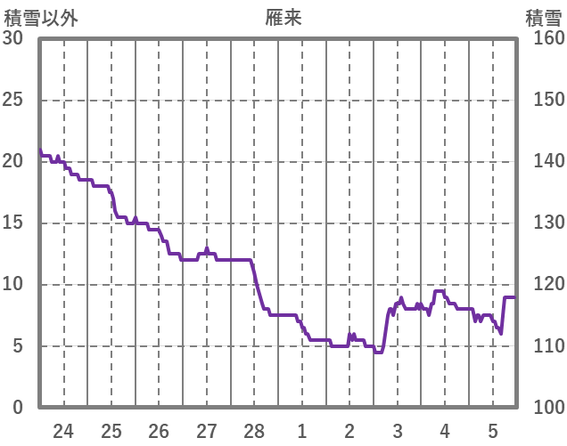 | 日 | 時 | 気温 | 降水 | 風向/風速 | 日照 | 積雪 | 降雪 |