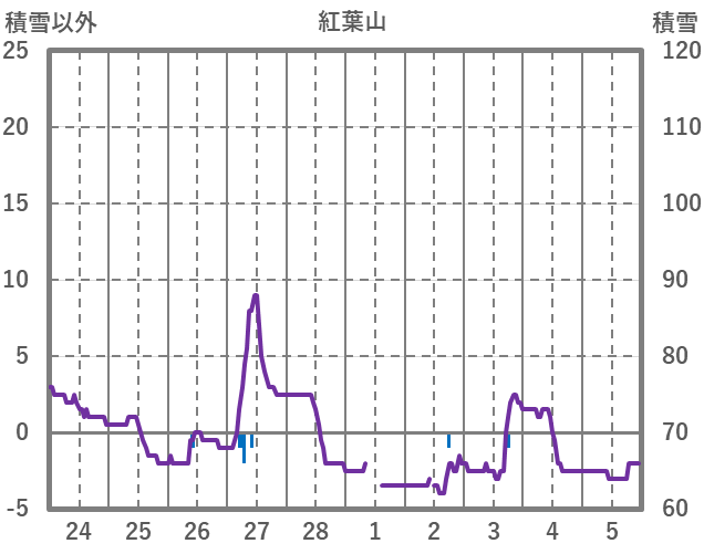 | 日 | 時 | 気温 | 降水 | 風向/風速 | 日照 | 積雪 | 降雪 |
