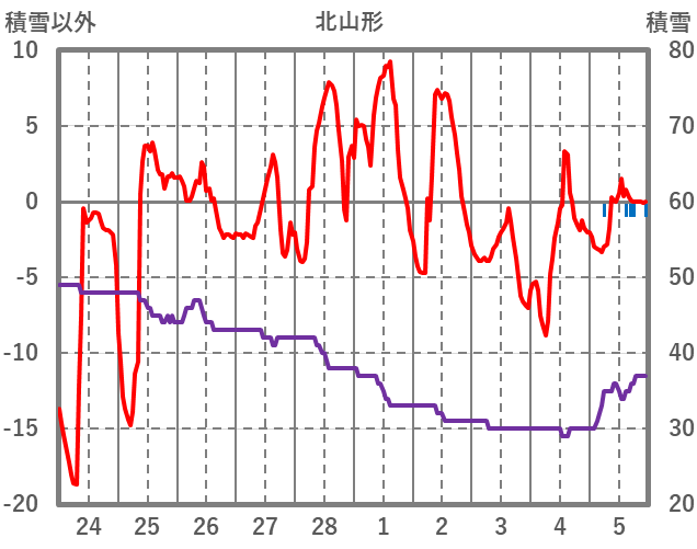 | 日 | 時 | 気温 | 降水 | 風向/風速 | 日照 | 積雪 | 降雪 |