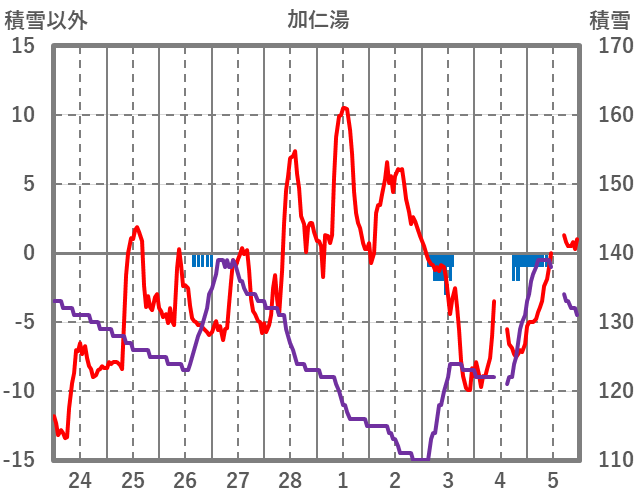 | 日 | 時 | 気温 | 降水 | 風向/風速 | 日照 | 積雪 | 降雪 |