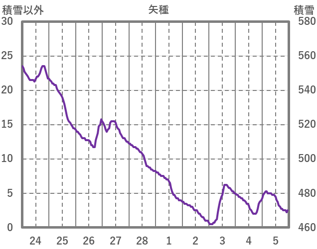 | 日 | 時 | 気温 | 降水 | 風向/風速 | 日照 | 積雪 | 降雪 |