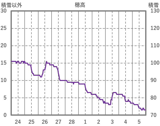 | 日 | 時 | 気温 | 降水 | 風向/風速 | 日照 | 積雪 | 降雪 |