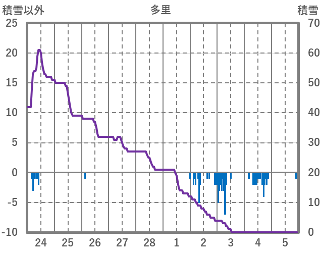 | 日 | 時 | 気温 | 降水 | 風向/風速 | 日照 | 積雪 | 降雪 |