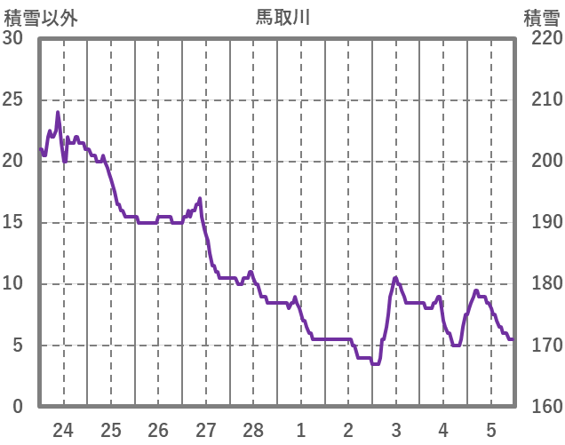 | 日 | 時 | 気温 | 降水 | 風向/風速 | 日照 | 積雪 | 降雪 |