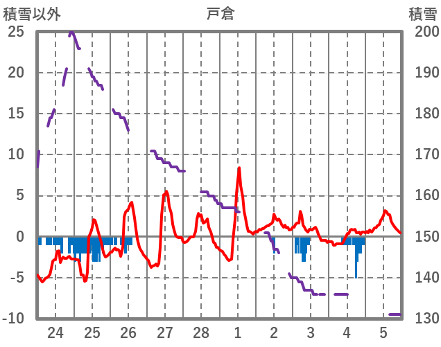 | 日 | 時 | 気温 | 降水 | 風向/風速 | 日照 | 積雪 | 降雪 |