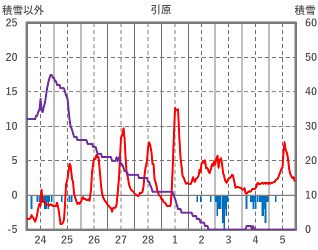 | 日 | 時 | 気温 | 降水 | 風向/風速 | 日照 | 積雪 | 降雪 |