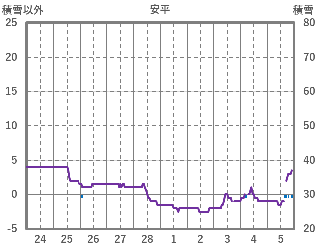 | 日 | 時 | 気温 | 降水 | 風向/風速 | 日照 | 積雪 | 降雪 |