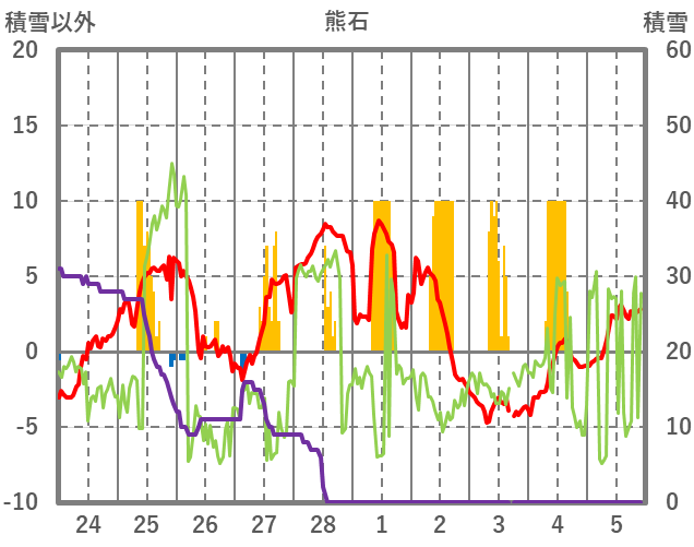 | 日 | 時 | 気温 | 降水 | 風向/風速 | 日照 | 積雪 | 降雪 |
