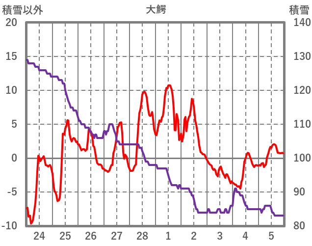 | 日 | 時 | 気温 | 降水 | 風向/風速 | 日照 | 積雪 | 降雪 |