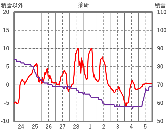 | 日 | 時 | 気温 | 降水 | 風向/風速 | 日照 | 積雪 | 降雪 |