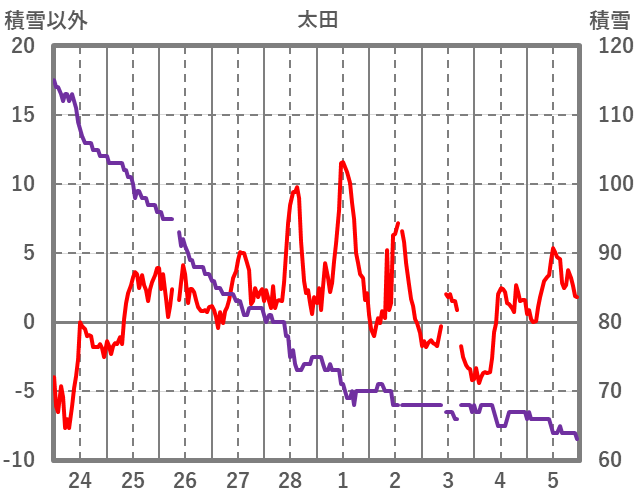 | 日 | 時 | 気温 | 降水 | 風向/風速 | 日照 | 積雪 | 降雪 |
