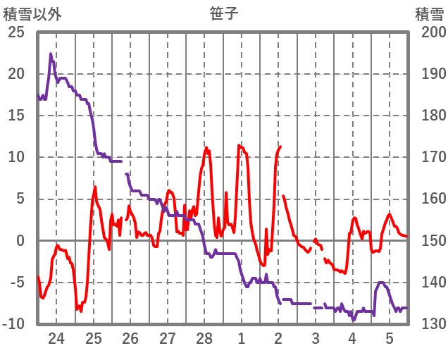 | 日 | 時 | 気温 | 降水 | 風向/風速 | 日照 | 積雪 | 降雪 |