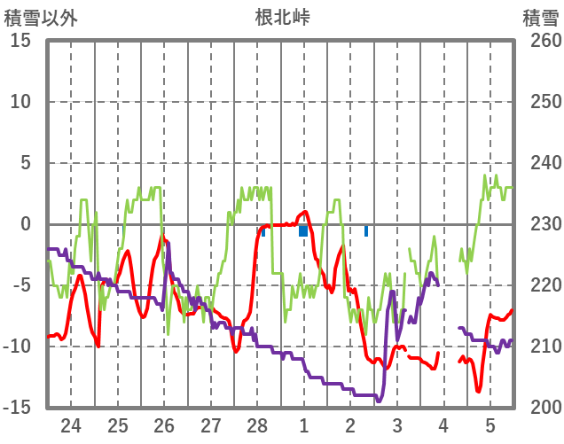 | 日 | 時 | 気温 | 降水 | 風向/風速 | 日照 | 積雪 | 降雪 |