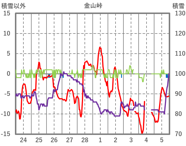 | 日 | 時 | 気温 | 降水 | 風向/風速 | 日照 | 積雪 | 降雪 |