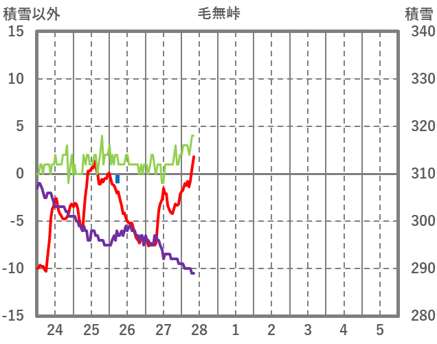 | 日 | 時 | 気温 | 降水 | 風向/風速 | 日照 | 積雪 | 降雪 |