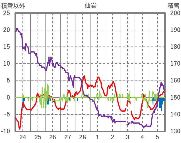 | 日 | 時 | 気温 | 降水 | 風向/風速 | 日照 | 積雪 | 降雪 |