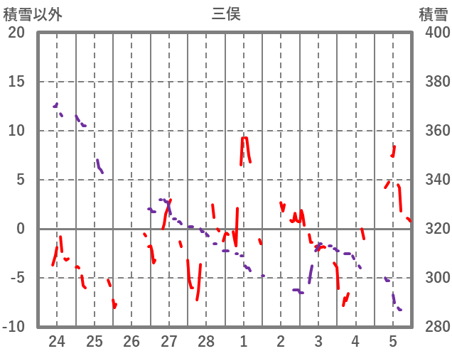 | 日 | 時 | 気温 | 降水 | 風向/風速 | 日照 | 積雪 | 降雪 |