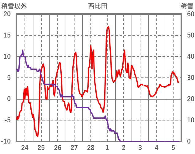 | 日 | 時 | 気温 | 降水 | 風向/風速 | 日照 | 積雪 | 降雪 |