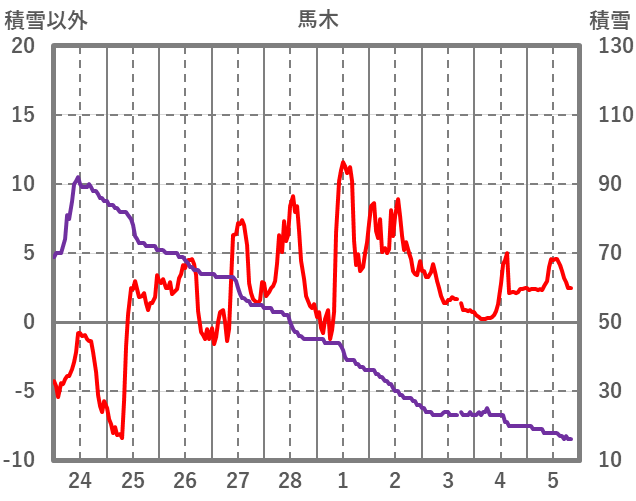 | 日 | 時 | 気温 | 降水 | 風向/風速 | 日照 | 積雪 | 降雪 |