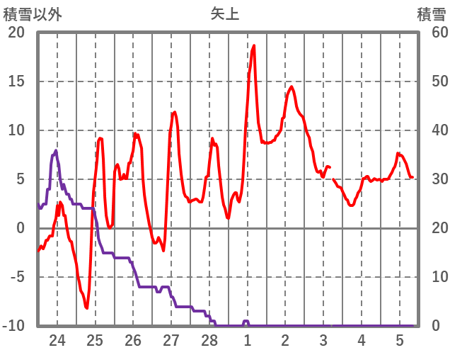 | 日 | 時 | 気温 | 降水 | 風向/風速 | 日照 | 積雪 | 降雪 |