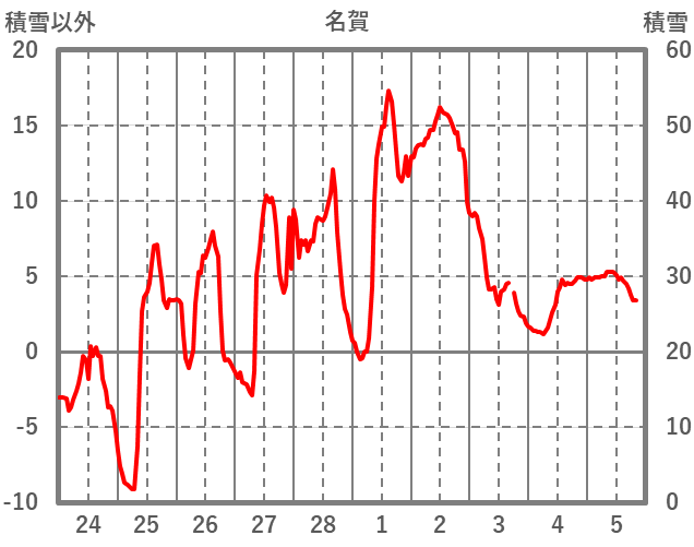 | 日 | 時 | 気温 | 降水 | 風向/風速 | 日照 | 積雪 | 降雪 |