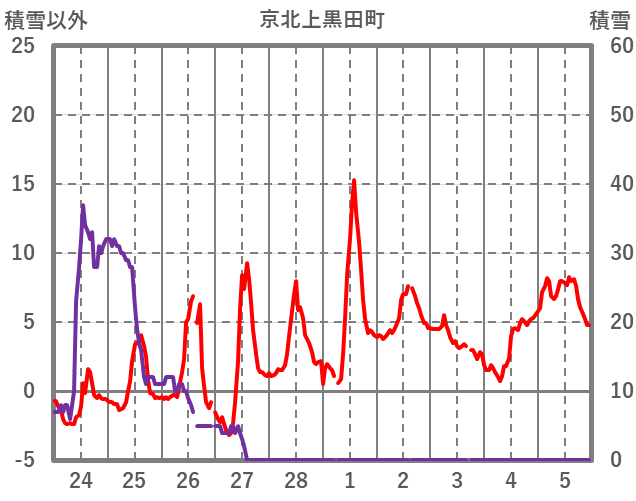 | 日 | 時 | 気温 | 降水 | 風向/風速 | 日照 | 積雪 | 降雪 |