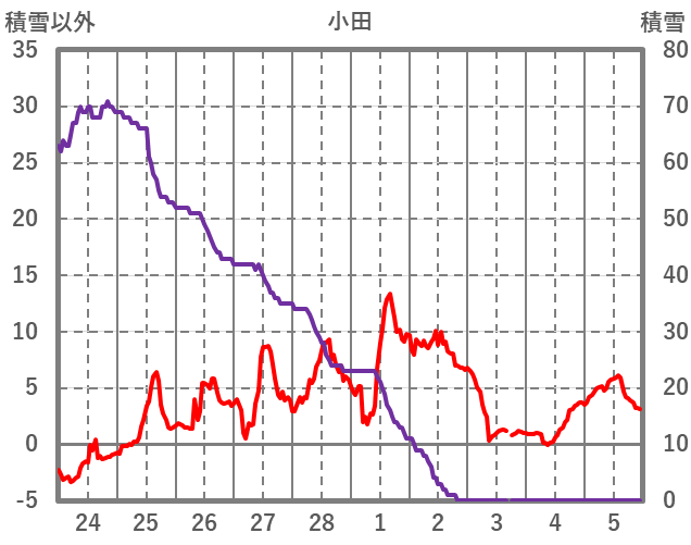 | 日 | 時 | 気温 | 降水 | 風向/風速 | 日照 | 積雪 | 降雪 |