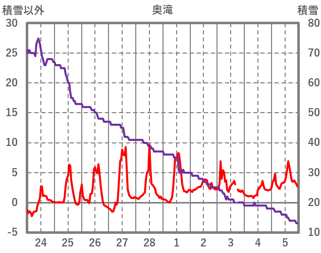 | 日 | 時 | 気温 | 降水 | 風向/風速 | 日照 | 積雪 | 降雪 |