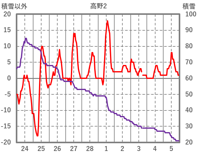 | 日 | 時 | 気温 | 降水 | 風向/風速 | 日照 | 積雪 | 降雪 |