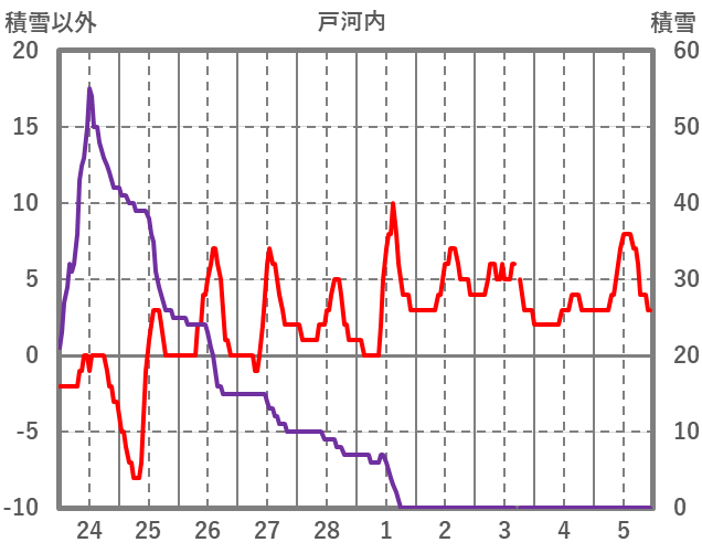 | 日 | 時 | 気温 | 降水 | 風向/風速 | 日照 | 積雪 | 降雪 |