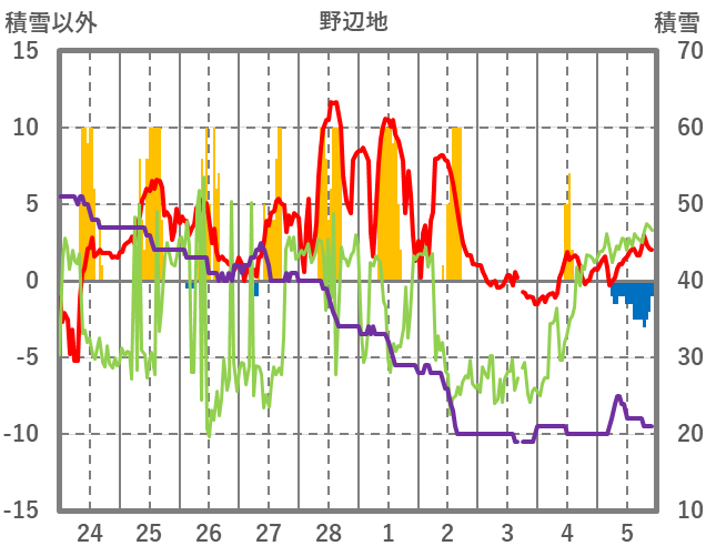 | 日 | 時 | 気温 | 降水 | 風向/風速 | 日照 | 積雪 | 降雪 |