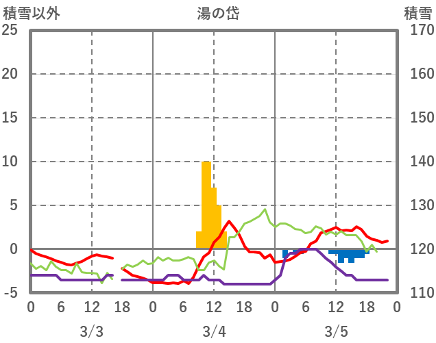 | 日 | 時 | 気温 | 降水 | 風向/風速 | 日照 | 積雪 | 降雪 |