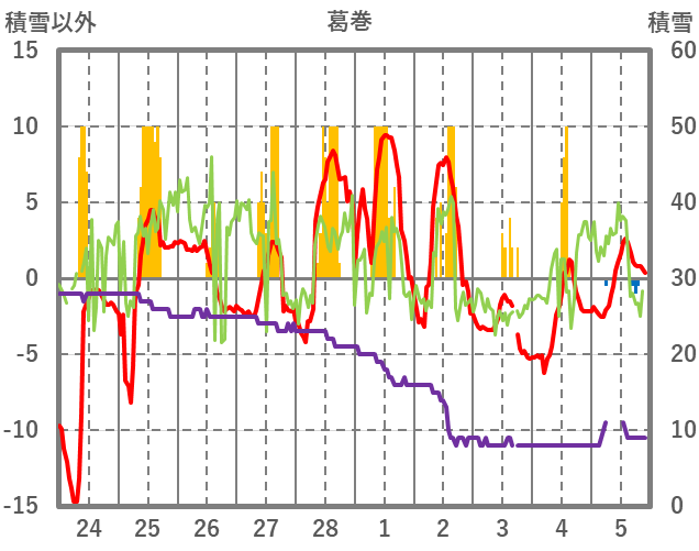 | 日 | 時 | 気温 | 降水 | 風向/風速 | 日照 | 積雪 | 降雪 |