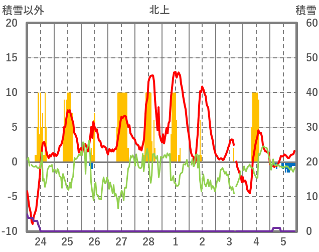 | 日 | 時 | 気温 | 降水 | 風向/風速 | 日照 | 積雪 | 降雪 |