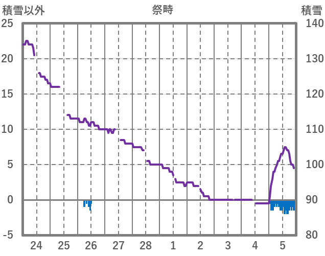| 日 | 時 | 気温 | 降水 | 風向/風速 | 日照 | 積雪 | 降雪 |