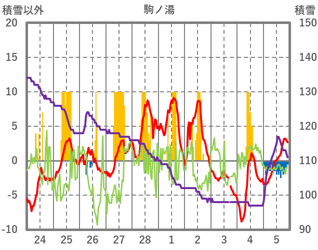 | 日 | 時 | 気温 | 降水 | 風向/風速 | 日照 | 積雪 | 降雪 |
