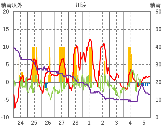 | 日 | 時 | 気温 | 降水 | 風向/風速 | 日照 | 積雪 | 降雪 |
