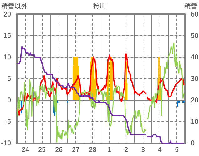 | 日 | 時 | 気温 | 降水 | 風向/風速 | 日照 | 積雪 | 降雪 |
