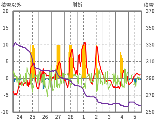 | 日 | 時 | 気温 | 降水 | 風向/風速 | 日照 | 積雪 | 降雪 |