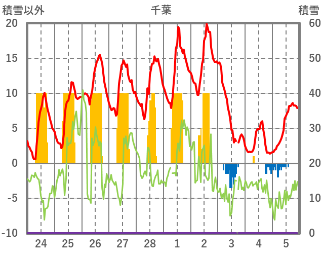 | 日 | 時 | 気温 | 降水 | 風向/風速 | 日照 | 積雪 | 降雪 |